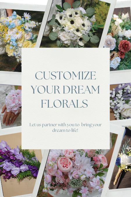 Bring your vision to life with our custom faux floral designs, tailored to suit the style of your special day. From color palettes to floral types, we’ll work with you to create pieces that are uniquely yours.