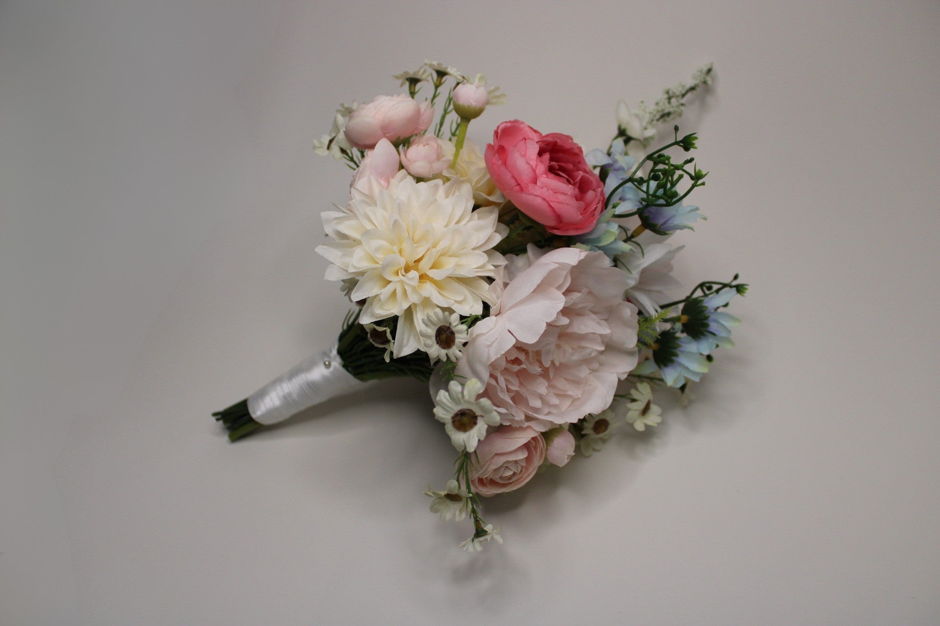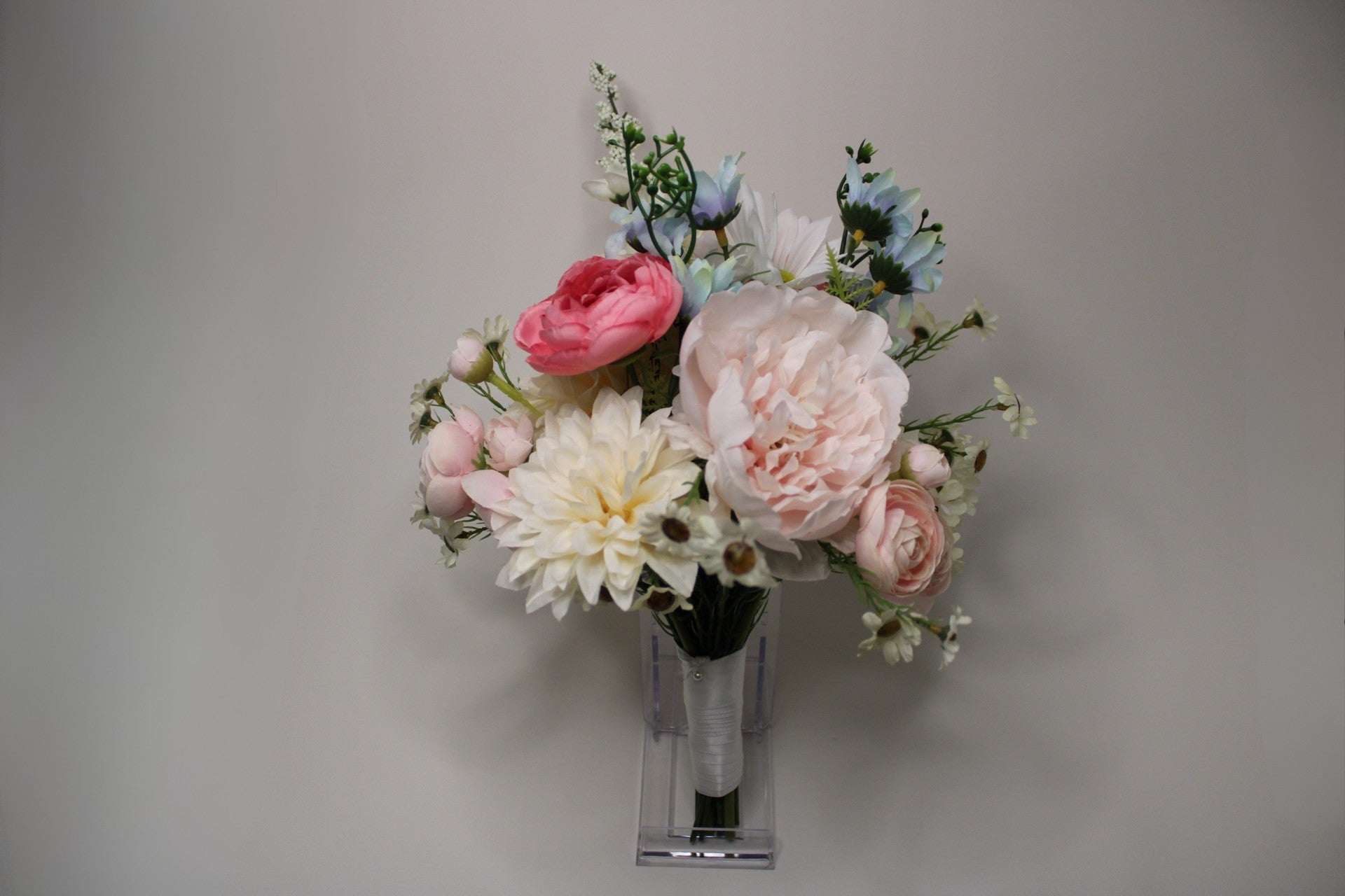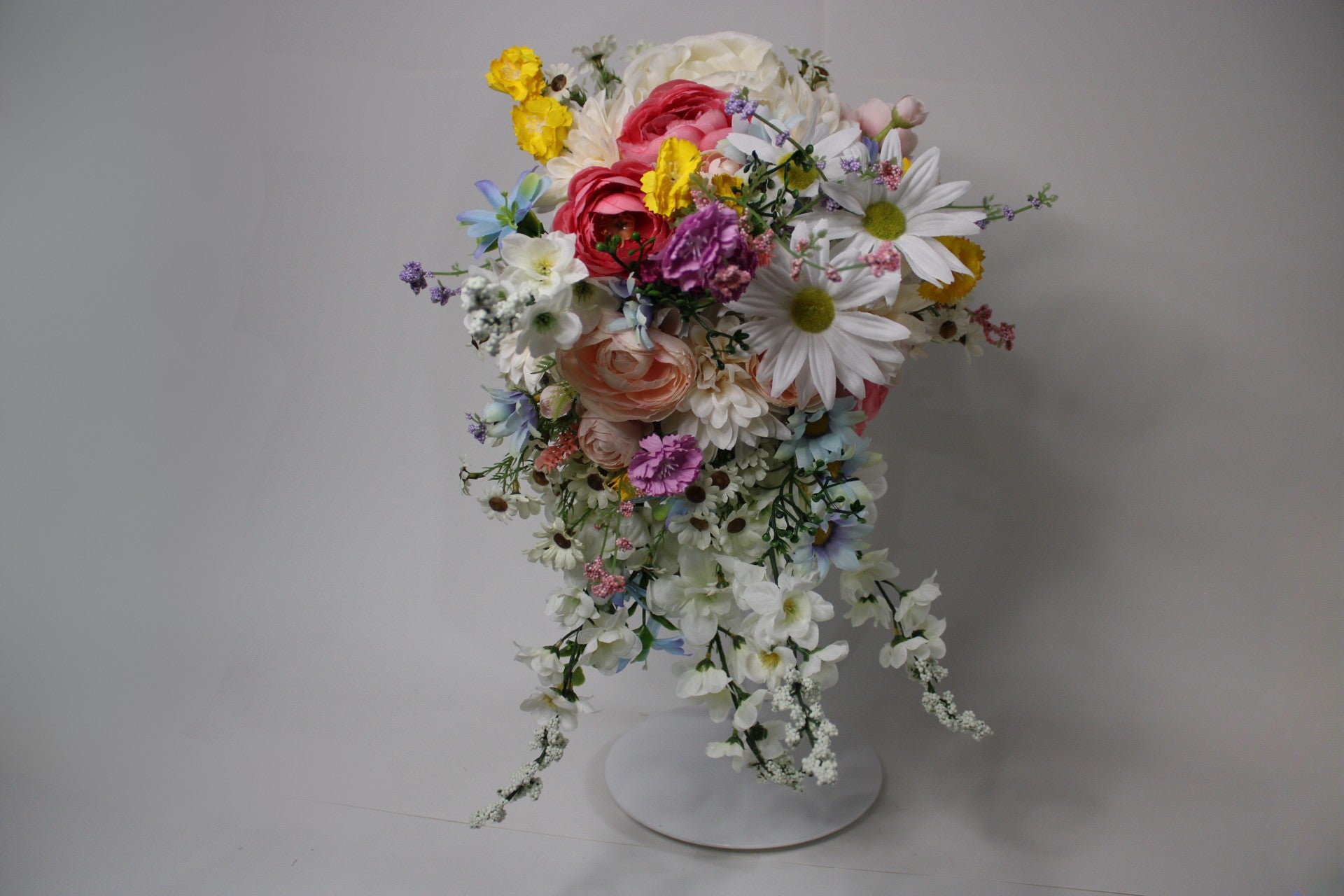 Delight in the whimsical elegance of our Wildflower Garden Party faux floral collection, designed to bring vibrant charm to your wedding day. With a refined blend of bright blues, pinks, yellows, creams, and whites, this collection features daisies, snapdragons, ranunculus, dahlias, peonies, and curated wildflowers. It's a joyful, garden-inspired look with a touch of sophisticated romance.