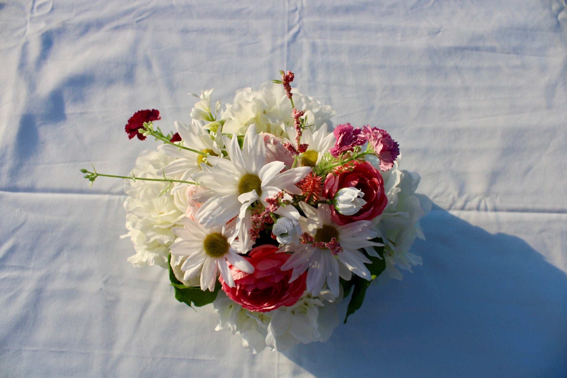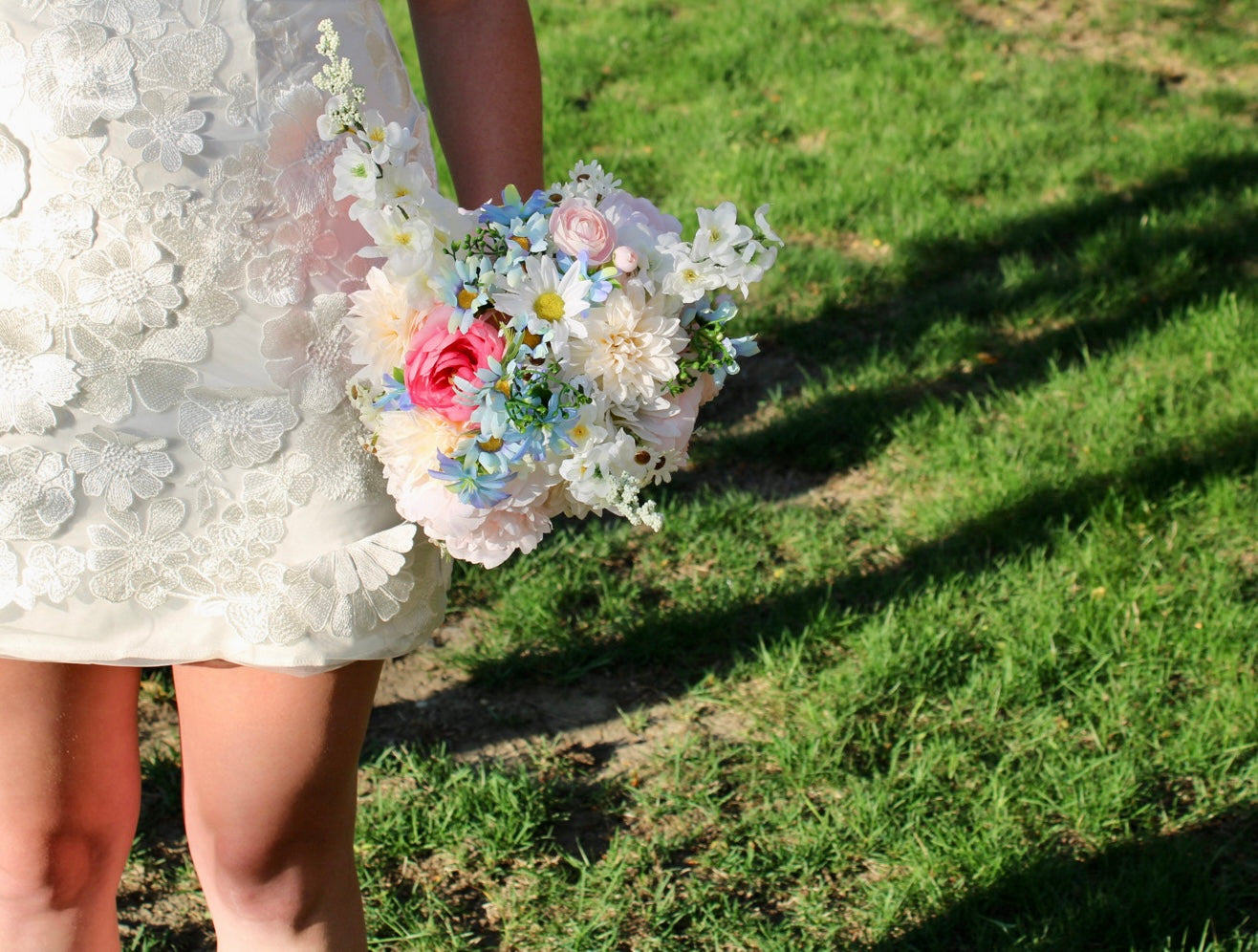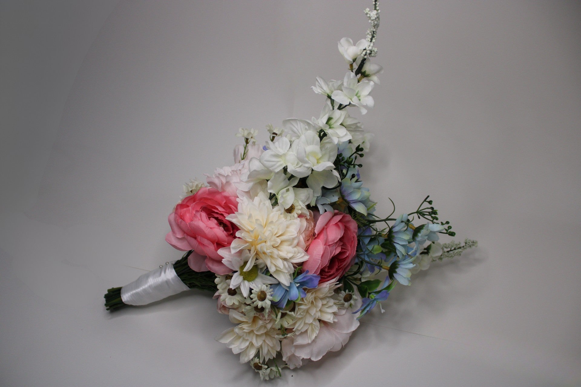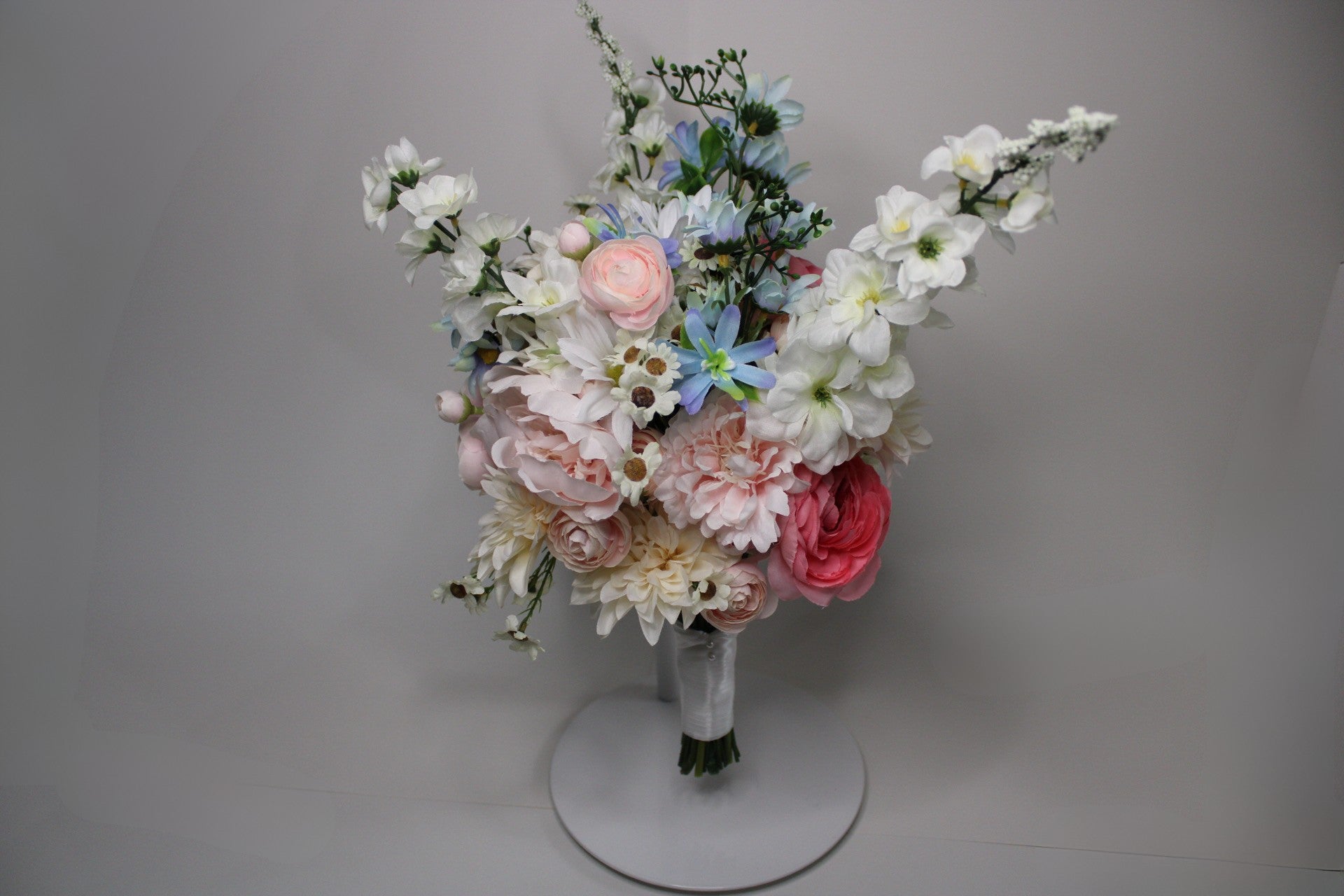 Delight in the whimsical elegance of our Wildflower Garden Party faux floral collection, designed to bring vibrant charm to your wedding day. With a refined blend of bright blues, pinks, yellows, creams, and whites, this collection features daisies, snapdragons, ranunculus, dahlias, peonies, and curated wildflowers. It's a joyful, garden-inspired look with a touch of sophisticated romance.